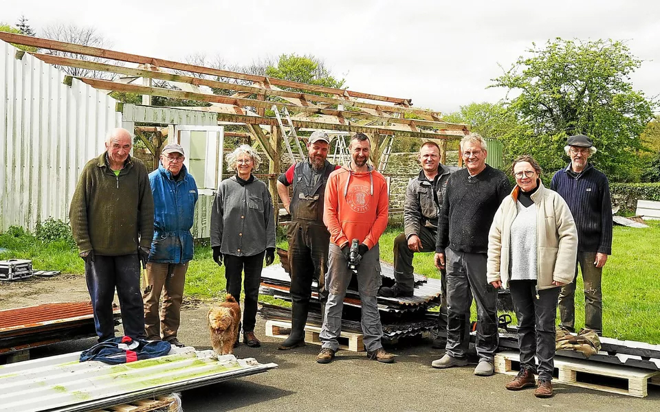 L’équipe municipale et quelques bénévoles ont démarré les travaux de rénovation du boulodrome. René Le Ray (à droite) coordonne le chantier. Samedi, une partie de la toiture a été refaite. Un prochain chantier permettra de remplacer les tôles des murs en bardage extérieur. Le boulodrome a pour destination un usage public et gratuit.